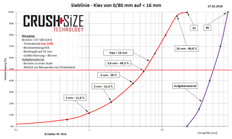 What distinguishes this technology from conventional crushers such as cone, impact, and VSI crushers is the low proportion of undesirable fine fractions (< 0.063 mm) and sand (< 2 mm). This correspondingly increases the proportion of the higher-value and desired aggregate fractions (2–5/5–8/8–11/11–16 mm). This results in significantly increased efficiency and, at the same time, a reduced disposal rate of the unwanted fractions, making a valuable contribution to the conservation of natural resources. At the same time, this efficient crushing technology allows energy consumption to be reduced by up to 70% while maintaining the same crushing ratio.”